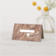 Este design apresenta um fundo de madeira rústico. O simples fundo de madeira marrom é complementado pelo texto branco e pelo elemento moderno círculo central limpo que circunda a noiva e o nome do noivo data do casamento no verso do cartão. Os tons castanhos dos grãos de madeira criam uma sensação rústica de jardim florestal rural. Design de casamento elegante com elementos modernos. Os convites de casamento e outros artigos de papelaria também estão disponíveis. Fácil de personalizar com seus detalhes. Escreva à mão os nomes de convidados e o número da tabela no espaço fornecido.
