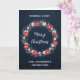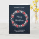 Feliz Natal para o cartão de avô com terra nevada rústica e folhagem de inverno com poinsetos.