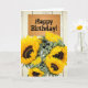 Cartão Rústica Cerca de Madeira Sinal Sunflower Aniversár