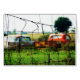 Uma foto que tirei numa caminhada no verão de 2009. Eu queria que o foco fosse na cerca com o carro e o caminhão ainda visíveis no fundo. Fiz o efeito de ácido urbano sobre isso.
