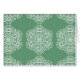 Esta mandala branca senta-se sobre um fundo verde-cinza. As cores são naturais e relaxantes. Parte da Coleção Pympbys Mandala.