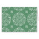 Esta mandala branca senta-se sobre um fundo verde-cinza. As cores são naturais e relaxantes. Parte da Coleção Dagrewi Mandala.