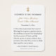 Este belo cartão de oração de casamento católico apresenta uma escritura sagrada de Marcos 10:6-9, elegantemente emoldurada com um desenho floral vintage e uma representação dos esponsais de Maria e José no topo. Serve como um lembrete precioso do sacramento do casamento, destacando a união que Deus uniu. Este cartão é ideal para casamentos católicos, proporcionando um souvenir significativo para a noiva, o noivo e seus convidados. Personalize este cartão tradicional para dar um toque único, tornando-o um memento precioso desta ocasião sagrada. Perfeito para ser incluído em programas de casamento ou como um presente de oração.