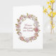 A frente tem uma bela coroa floral em tons pastéis suaves de rosa.