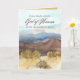 Feliz Dia de Ação de Graças com uma escritura Bíblia do livro de Salmos 136:26 e decorada com uma vista no deserto no outono ilustrada com tinta e aquarela. No dentro, há uma sombra coordenada de amarelo com texto que você pode editar para ajustado das suas necessidades.