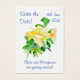 Um cartão 'Save the Date!' com um spray de belos rosas amarelos de escalada 'Dreaming Spires', de uma pintura aquosa de Judy Adamson.