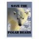 Um fecho de um urso polar com as palavras Salvar os Ursos Polares ao seu redor. Sem proteção, os ursos polares podem não sobreviver até ao século XXI. Coloque-os na lista protegida.