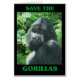 Um belo gorila adulto no seu habitat natural com as palavras Salvar os Gorilas ao seu redor.
