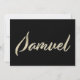 Eine personalisierte schöne und edle Karte / Grußkarte / Geschenkkarte / Geburtstagskarte im Handwriting liquid white gold Design für Samuel.