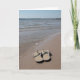 Personalize o Sandal de Verão no Cartão de Saudação de Praia com o seu próprio dentro de mensagem pessoal. Este cartão de nota personalizado apresenta uma fotografia natural de dois chinelos numa praia arenosa ao lado do lago Michigan, num dia quente de verão. Só de olhar para isso, você se sente como se estivesse de férias!