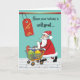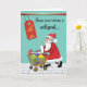Um Papai Noel engraçado esteve fazendo compras e tem um carrinho cheio de caixas e pacotes. A famosa lista do Papai Noel está em cima. Uma etiqueta de promoção está pendurada em uma barra acima. Este cartão humorístico brinca com a quantidade de dinheiro gasto e cobrado no Natal. Algo com o qual a maioria de nós pode se identificar!