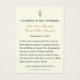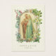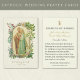 Com uma bela imagem católica tradicional da imagem do noivado de Maria e José com uma borda dourada decorativa acentuada com várias cores de flores e um fundo de renda branca. Uma oração está no verso para a noiva e o noivo. Todo o texto e fontes podem ser modificados.
