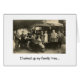 Uma fotografia antiga de um grupo muito incomum de pessoas posando ao redor de um velho automóvel. Pessoas de todos os tamanhos e formas. Podem ser artistas de circo...ou podem ser a tua família! A frente do cartão diz: "Olhei para a árvore genealógica..." e dentro o cartão, "...e descobri que eu era o seiva!"