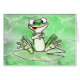 Está aqui um sapo amigável, colando para fora sua língua, sentando-se em uma almofada de lírio. Este design dos desenhos animados foi criado com aguarela, o lápis colorido e a tinta.