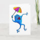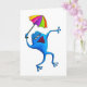 Cartão Sapo azul do canto com guarda-chuva