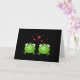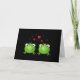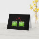 Um casal de sapos verdes bonitos com corações vermelhos em um fundo preto comum.