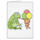 Sapo sorridente rouba um cone de sorvete com a língua. Design transparente adequado para elementos claros e escuros. Personalize-o com o seu texto.