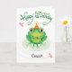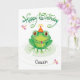 Faça sua atitude anfíbia com esta sapo numa almofada de lírio olhando para uma fatia de bolo de aniversário na frente dele. Mande isso para o seu primo que ama sapos e deseja diversão!