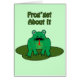 Um sapo de desenho verde sentado numa almofada de lírio com a língua a sair. O texto acima diz "Sapo'get About It"