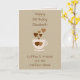 Personalize este cartão de saudação de aniversário com um nome e altere o outro texto, se preferir. Projetado em marrom e creme com uma xícara de café e corações de amor.
