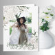 Envie seus cartões de aniversários com este elegante cartão de saudação de aniversário floral personalizado. Escolha sua foto favorita da aniversariante ou inclua uma foto do seu rosto para compartilhar sua alegria no dia especial da aniversariante.