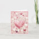 Cartão Saudação de Coração e Flores de Cor Rosa