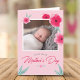 Lindo cartão de saudação do Primeiro Dia das Mães, único, com lindas flores cor-de-rosa e adicione sua foto favorita.