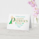 Um elegante cartão de saudação de Dia de São Patrício para a sua esposa com uma inscrição decorativa esboçada em cor dourada, preenchida com um padrão verde e decorada com aglomerados de molhos. A saudação do cobrir é "Desejando a você um feliz DIA DE SAINT PATRICK para minha maravilhosa esposa!", tudo sobre um fundo branco ligeiramente texturizado. A mensagem dentro é apenas uma sugestão e você pode alterá-la facilmente ou apagá-la completamente, se desejar.