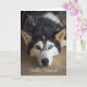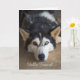 Todos os amantes de cães apreciarão este cartão, representando um Husky Siberiano com um olho marrom e um olho branco-azulado. A Rouco está em repouso com a cabeça para baixo, dando uma olhadela muito cheia nos olhos do receptor. A personalização do cheio está disponível no texto. Fotografia e design ©Vann-Horn Creative Photo & Designs.