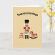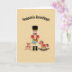 Belo cartão de feriado com pregador, ursinho de peluche e cavalo de balanço e personalizar/personalizar texto