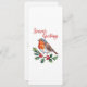 Saudações de Season de Robin Card alegre. Um belo assalto de Natal senta-se pacificamente num ramo de morango vermelho, calmo e sereno no meio do frio do inverno, a sua presença suave trazendo calor, alegria, e a calma antecipação do Natal.