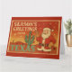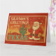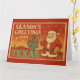Celebre o Natal com um toque do Texas! Este cartão de Natal em estilo retrô apresenta um Papai Noel alegre acenando ao lado de um cacto decorado com enfeites vermelhos, contra um pôr do sol quente no deserto. Com vibrações de cartão-postal retrô e tipografia ousada “Saudações de Fim de Ano do Texas”, este design traz charme do Sudoeste para seus votos de Natal. Perfeito para enviar amor e alegria festiva do Lone Star por milhas.