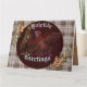 Padrão simples de xadrez vermelho e verde com adorável e charmoso pássaro Passero Roxo e adornos naturais, ótimo para Espalhar a Alegria Natalina! O texto "Saudações de Natal" pode ser mantido ou personalizado com seu próprio nome ou mensagem para um visual personalizado!