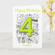 Cartão saudações verdes de nome personalizado de 4 anos f