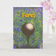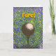 Bola de golfe sobre uma árvore, senta-se sobre um fundo de pontos verdes, azuis, amarelos e roxos. Acima está o texto sombreado lendo "Fore!" O texto do dentro pode ser alterado, como padrão: "Você está virando outro ano mais velho!"