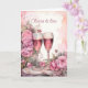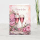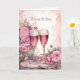 Uma bela flor rosa e dois copos de champanhe, cartão de casamento para a noiva e o noivo. "Saúde para amar" por fora. Verso na dentro: "Desejando que você ame, risse e alegre para sempre depois de maio, os anos que se seguem sejam cheios de tanto amor"