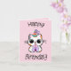 ‘Happy birthday’ in katachtig lettertype en een schattige kat met een feesthoedje en een cadeau!
