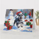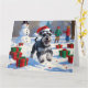 Cartão Schnauzer Correndo em Neve com Chapéu de Natal
