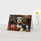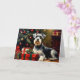 O Natal do Cachorro Schnauzer — sentado perto da árvore de Natal esperando para abrir seu presente de Natal.