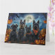 Libere o espírito assustador com esta design sombria do Dia das Bruxas apresentando um bando de cachorros sob um céu escuro e iluminado, cercado por morcegos voadores e abóboras brilhantes. Perfeito para aqueles que amam um toque de diversão terrível com seus amigos peludos!
