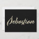 Eine personalisierte schöne und edle Karte / Grußkarte / Geschenkkarte / Geburtstagskarte im Handwriting liquid white gold Design für Sebastian.