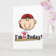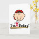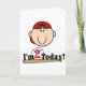 Camisas de segundo aniversário de beisebol, canecas, cartões, adesivos, sacos de tote, fatos-tronco e mais com um jogador de beisebol de cabelos castanhos com boné vermelho, beisebol, taco e texto que diz "Estou 2 Hoje!".