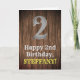 Este design de carta de saudação de aniversário inspirada no oeste apresenta um grande número inspirado no rústico "2", a mensagem "segundo aniversário Feliz", um nome personalizável e um padrão de estilo inspirado em falsa/imitação de grãos de madeira. O dentro tem uma mensagem de saudação de aniversário personalizada, ou talvez pudesse ser apagado e deixado vazio se uma mensagem for escrita manualmente. Um cartão de saudação de aniversário personalizado como este pode ser enviado para comemorar o segundo aniversário de alguém. [~Z0000469]
