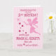 Mande abraços e beijos especiais para sua neta no segundo aniversário com este cartão de aniversário de fada rosa. Tiras cor-de-rosa sutis constituem o fundo enquanto a fada é aspergindo corações mágicos.