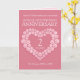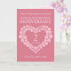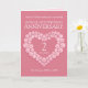 Bonito miçangas gráficas personalizadas de quartzo de rosa em forma de coração num cartão de aniversário de casamento. Personalize este cartão cor-de-rosa com o nome do seu casal, o ano do casamento e as palavras da mensagem dentro. Outros itens correspondentes estão disponíveis. Barreira cor-de-rosa com efeito cardíaco, arte gráfica e design por Sarah Trett para www.mylittleeden.com e www.mylittleedenweddings.com