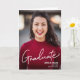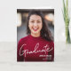 Personalize este cartão dobrado do anúncio de graduação moderno com sua foto de formando, nome, ano de aula e nome da escola. Inclua um dentro de saudação especial e outros detalhes. Tipografia de fontes moderna, elegante e chic. Compartilhe seu entusiasmo para a família e amigos na realização do seu formando. Use este modelo de anúncio de formando de design para seu segundo grau, universidade ou formando de faculdade.