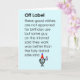 Um cartão de aniversário feliz engraçado, com um poema e ilustração ruins, sobre cartões de aniversários não rotulados que podem ou não ser melhores que o tipo aprovado. Nossa personagem, tillie, está vestindo um chapéu de festa de aniversário e segurando uma garrafa de cartões de aniversários não rotulados (HBD).