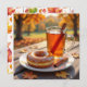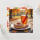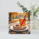 A pretty Fall card to send someone Autumn Blessings. A pretty illustration of plate of a glazed donut, apple cider with cinnamon stickrs and a pretty Fall leaves background.
