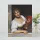 Esta design apresenta uma pintura do artista italiano Eugene de Blaas (1843-1931). Mostra uma bela mulher italiana a vestir a fantasia tradicional, incluindo um espartilho e um vestido baixo. Ela também está vestindo um colar de ouro. A mulher se inclina em uma varanda de pedra, e ela está segurando em sua mão um fã vermelho com um padrão floral. Ela está sorrindo para o espectador com lábios vermelhos, bochechas rosadas e olhos azuis pensativos. Ela tem cabelo castanho que está em coalhada. Ela também parece estar vestindo brincos de forro de ouro. É um retrato atraente de uma tradicional senhora italiana. A arte original foi pintada em 1892.