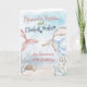 Cartão personalizado de aniversário da sereia com "Sereia Kisses and Starfish Wish", escrito em tipografia temática sobre sereia. Design sutil e gentil com caudas de sereia mergulhando e saindo do oceano com peixes e tartarugas em cor d'água de bolo neutro. Cartão de modelo para você personalizar com o nome e a idade na frente e no dentro de mensagens opcional.